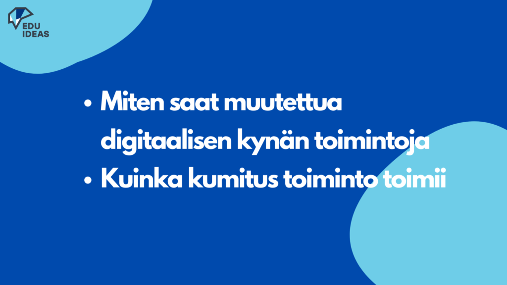 Tässä osiossa opit, miten saat muutettua digitaalisen kynän toimintoja. Opit lisäksi, kuinka kumitustoiminto toimii.